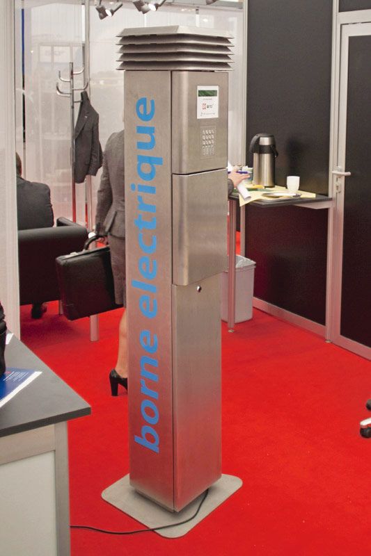 Dieser Schnell-Ladepunkt verfügt seitlich rechts über eine Typ2 Dose, um E-Fahrzeuge aufzuladen. Er kann in Pfahl- oder Wandmontage angebracht werden, verfügt bereits über notwendige Schutzschalter und erlaubt die Aufladung jeweils über einen Schlüsselschalter. Es fallen keine Wartungs- oder Roamingkosten an, da eine Abrechnungsfunktion nicht vorgesehen ist.
