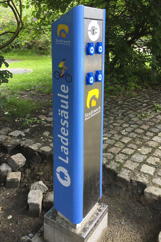 An dieser Velo-Edition unserer Energie-Standladesäule "Magdeburg" können bis zu 4 e-Bikes gleichzeitig im Countdown-Modus geladen werden.