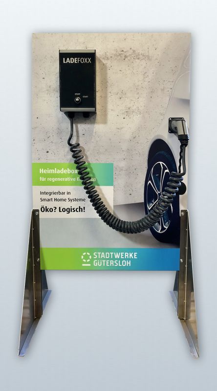 Für alle, die auffallen möchten! Ein echter Hingucker im Stadtgebiet ist unsere Stromtanksäule "Gütersloh Touch" mit zwei Typ 2 Ladepunkten und automatischer Leistungsanpassung auf 11 kW oder 22 kW. Der klaren Grundform aus Edelstahl haben wir ein 7 Zoll Display hinzugefügt. So sind Sie mit Ihren Kunden immer in direktem Kontakt.