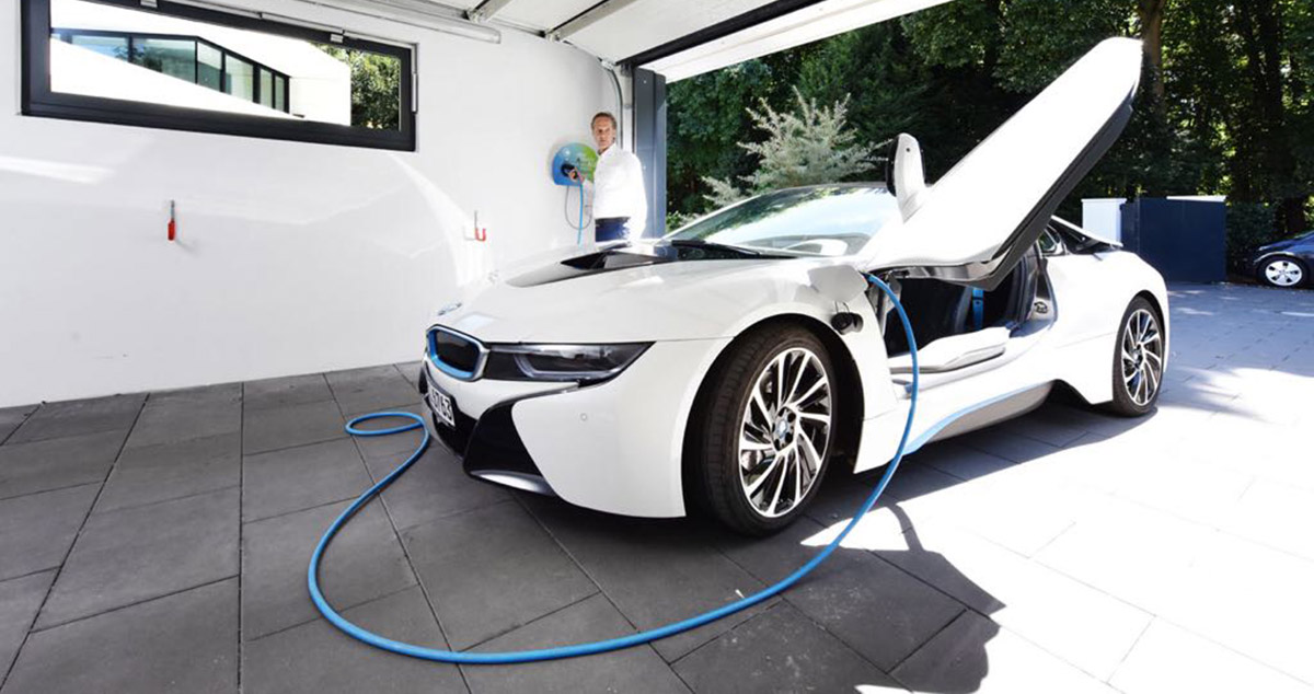 Lassen Sie Ihr Ladekabel im Kofferraum – alle notwendigen Ladekomponenten hängen in einem kleinen Aluminiumgehäuse mit Pulverbeschichtung und fest angeschlagenem Ladekabel schon an der Wand.